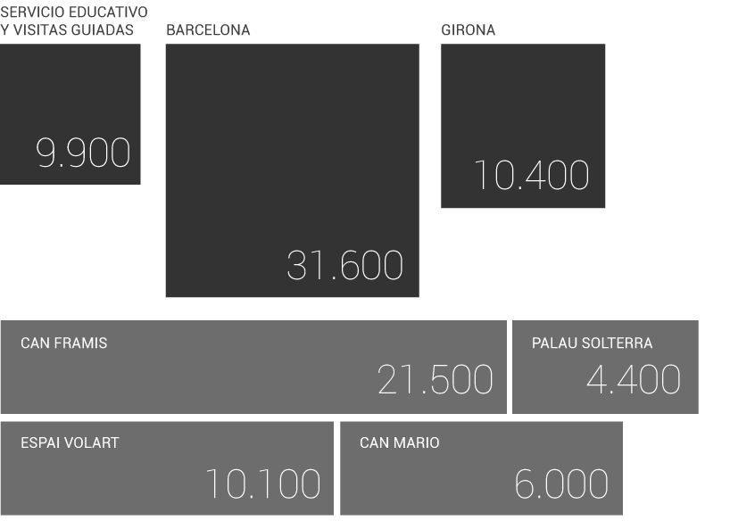 Visitantes Espais Volart 5.200 5.000 6.000 30.200 32.000 13.000 6.000 12.800 14.500 15.800 10.100